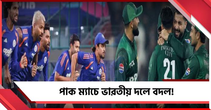 এই ম্যাচে ফের ভারতীয় দলের প্রথম একাদশে বদল হতে পারে। রিঙ্কু সিং রানের মধ্যে নেই। সেই জায়গায় আসতে চলেছেন ওয়াশিংটন সুন্দর। চোটের জন্য বিশ্বকাপের প্রথম দু’টি ম্যাচেও খেলেননি। তবে পাকিস্তানের বিরুদ্ধে প্রথম একাদশে থাকতে থাকতে পারেন অল রাউন্ডার সুন্দর। সেই সঙ্গে আরও এক স্পিনার খেলাবে টিম ইন্ডিয়া। অর্শদীপ সিং বসানোচ হতে পারে সুযোগ পেতে পারেন কুলদীপ যাদব। তবে সাম্প্রতিক সময়ে কুলদীপ ভালো ফর্মে নেই।