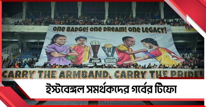তবে এই ম্যাচেও লাল হলুদ সমর্থকরা বজায় রাখলেন টিফো সংস্কৃতি। তাতে লেখা, ” one badge, one dreme, one legacy, Carry the armband, carry the pride.”