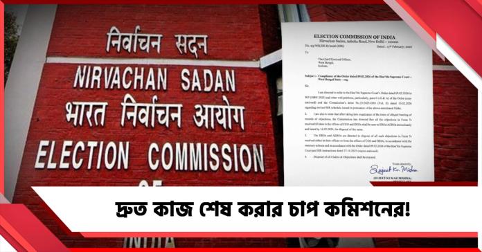 আধিকারিকদের সাসপেনশনের পাশাপাশি রবিবার নির্বাচন কমিশনের তরফে নির্দেশিকায় জানানো হয়েছে, ফর্ম ৭-এর (Form 7) কাজ শেষ করতে হবে ১৬ ফেব্রুয়ারির মধ্যে। রাজ্যের যত ভোটারদের নাম ভোটার তালিকা থেকে বাদ দেওয়ার প্রক্রিয়া, তা এই ফর্ম৭-এর মাধ্যমেই হচ্ছে। সেই কাজ ১৬ ফেব্রুয়ারির মধ্যে শেষ করতে হবে সব ইআরও এবং এইআরও-দের, নির্দেশ কমিশনের। ঠিক যেভাবে দিন বেঁধে দিয়ে বারবার কাজের চাপ দেওয়া হয়েছে বিএলও থেকে রাজ্য সরকারের আধিকারিকদের উপর, সেই প্রক্রিয়া এবার ভোটার তালিকা থেকে নাম বাদের কাজ শেষের জন্যও জারি রাখল নির্বাচন কমিশন।