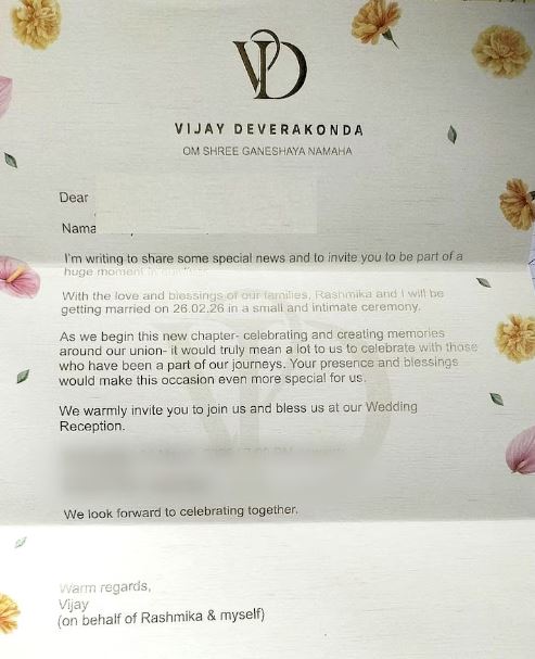 বিয়ের কার্ড ফাঁস, উদয়পুরে রাজকীয় অনুষ্ঠানে সাতপাক ঘুরবেন বিজয়-রশ্মিকা