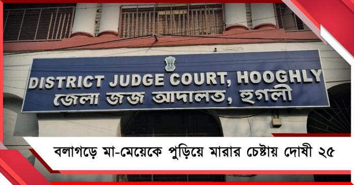 দীর্ঘ নয় বছরের অপেক্ষার অবসান। ২০১৭ সালে হুগলির বলাগড়ে ছেলেধরা সন্দেহে এক অধ্যাপকের স্ত্রী ও কন্যাকে পুড়িয়ে মারার চেষ্টা এবং পুলিশকে আক্রমণের ঘটনায় ২৫ জন অভিযুক্তকে দোষী সাব্যস্ত করল আদালত। বৃহস্পতিবার চুঁচুড়া আদালতের অতিরিক্ত জেলা ও দায়রা বিচারক এই রায় দান করেন। আজ, শুক্রবার এই মামলায় সাজা ঘোষণা হওয়ার কথা।