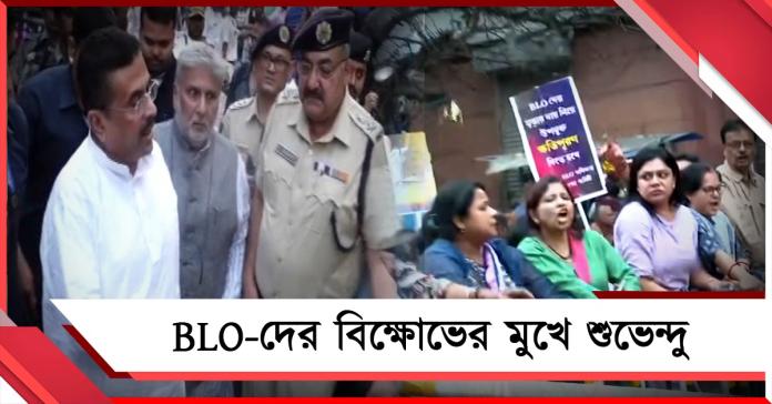 বিক্ষোভকারী বিএলও-দের একাংশের অভিযোগ, এসআইআর সংক্রান্ত অতিরিক্ত কাজের চাপ নিয়ে দিনের পর দিন তাঁরা মুখ্য নির্বাচনী আধিকারিকের দফতরের সামনে অবস্থান ও আন্দোলন চালিয়ে যাচ্ছেন। অথচ তাঁদের ভিতরে ঢুকতে দেওয়া হচ্ছে না। এই পরিস্থিতিতে এদিন শুভেন্দুকে কমিশনের ভিতরে যেতে দেখে ক্ষোভ আরও বাড়ে। মুখ্য নির্বাচনী আধিকারিক মনোজ আগরওয়ালের সঙ্গে দেখা করতে কমিশনের দফতরে যান শুভেন্দু। এরপরেই উত্তেজনা চরমে পৌঁছায়। ‘চোর’ স্লোগান দেওয়ার পাশাপাশি তাঁর দিকে জুতো ছুড়েও মারা হয়েছে বলে অভিযোগ। পরিস্থিতি সামাল দেয় পুলিশ। আরও পড়ুন: ISF-এর সঙ্গে জোটের সিদ্ধান্ত বামেদের: নওশাদের সঙ্গে বৈঠক বিমান-সেলিমের, বুধে আসন রফা