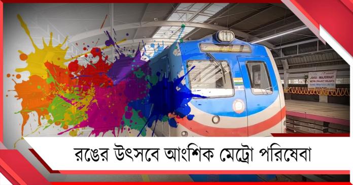 হোলি উপলক্ষ্যে ৩ মার্চ কলকাতার মেট্রো (Metro) পরিষেবা আংশিক বন্ধ থাকবে। কলকাতা মেট্রো (Kolkata Metro) কর্তৃপক্ষ জানিয়েছে, দোলের দিন শহরের কোনও মেট্রো লাইনে সকালে ট্রেন চলাচল করবে না। উত্তর-দক্ষিণ ব্লু লাইনে (Blue Line) প্রথম মেট্রো ছাড়বে দুপুর ২টোর পর। তবে দিনের শেষ মেট্রোর (last metro) সময়সূচিতে কোনও পরিবর্তন করা হচ্ছে না। অর্থাৎ বিকেল থেকে রাত পর্যন্ত মেট্রো পরিষেবা আগের মতোই স্বাভাবিক থাকবে।