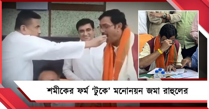 দলীয় নেতা এই অবস্থায় দলের রাজ্য সভাপতি শমীক ভট্টাচার্য মনোনয়ন পত্র বের করার নির্দেশ দেন বিরোধী দলনেতা শুভেন্দু অধিকারী। সেই ফর্ম দেখে কার্যত টুকে নিজের ফর্ম পূরণ করেন রাহুল সিনহা।