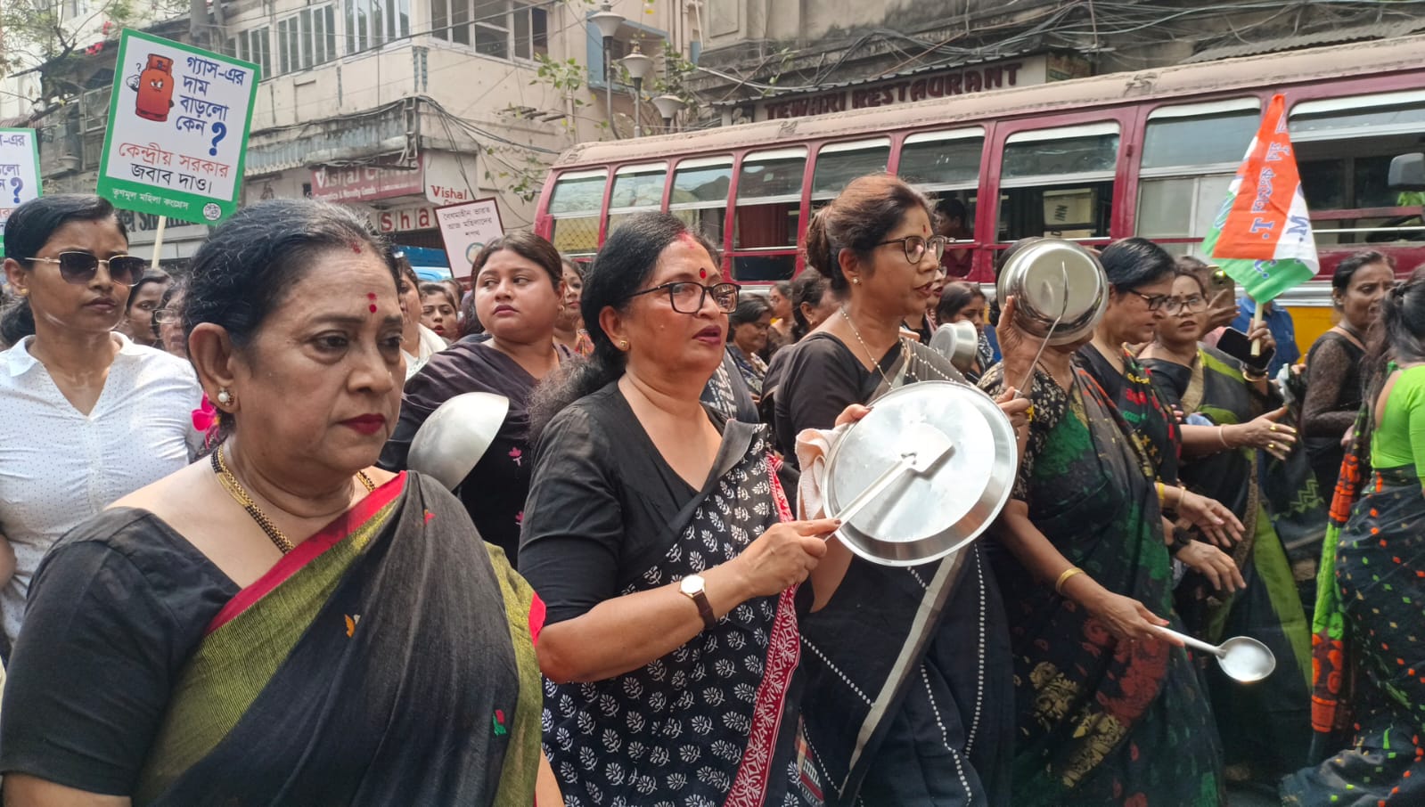 গ্যাসের দাম বৃদ্ধির প্রতিবাদ, কালো পোশাকে হাতা-খুন্তি নিয়ে অভিনব মিছিল মহিলা তৃণমূলের