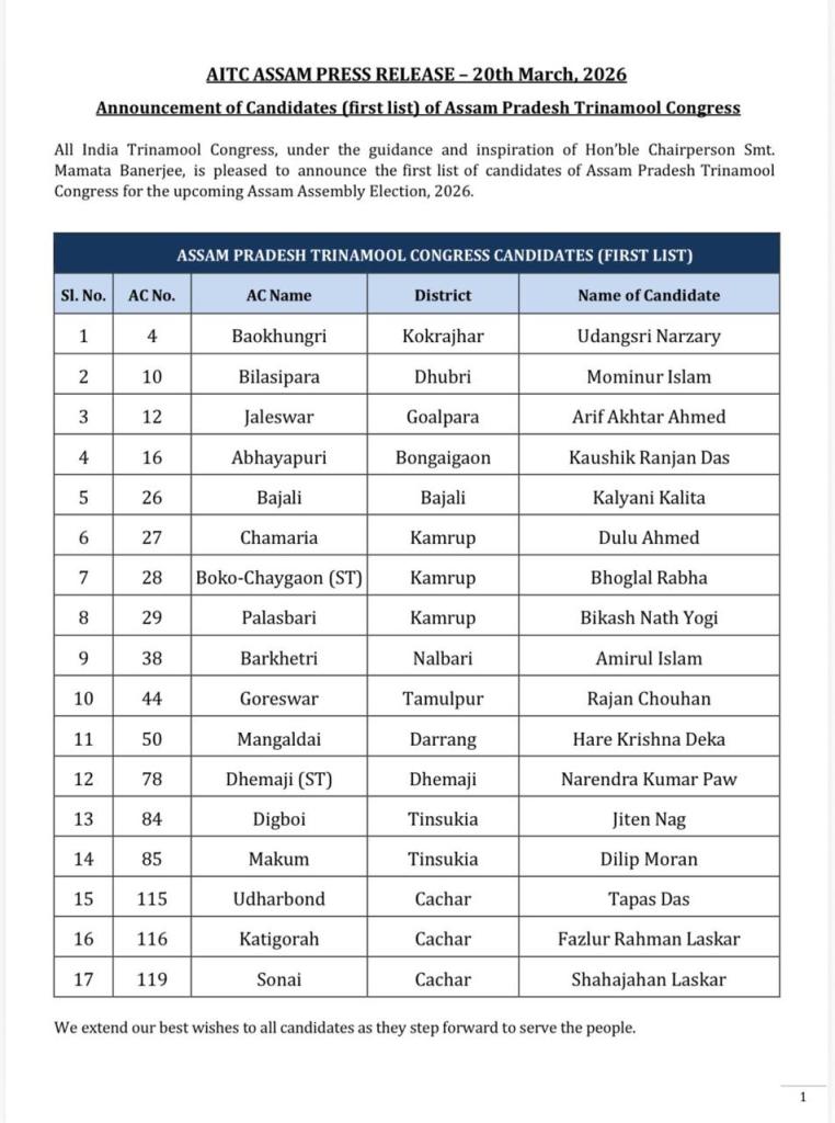 তারকা প্রচারকের পর প্রার্থী: অসমে ১৭ নাম ঘোষণা তৃণমূলের
