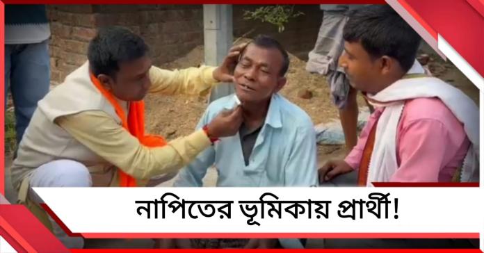 দীর্ঘ পাঁচ বছর পর আবারও পশ্চিমবঙ্গে বিধানসভা নির্বাচন একদম দোরগোড়ায়। নির্বাচন কমিশনের ঘোষণায় জানা গিয়েছে, রাজ্যের মোট ২৯৪টি বিধানসভা আসনে দুই দফায় ভোট গ্রহণ করা হবে—প্রথম দফা ২৩ এপ্রিল এবং দ্বিতীয় দফা ২৯ এপ্রিল। এর মধ্যে বীরভূম জেলায় প্রথম দফাতেই নির্বাচন অনুষ্ঠিত হতে চলেছে। নির্ঘণ্ট প্রকাশের পর থেকেই রাজ্যের বিভিন্ন প্রান্তে জোরকদমে প্রচারে নেমে পড়েছে সমস্ত রাজনৈতিক দল। এই আবহেই বীরভূমের দুবরাজপুর বিধানসভা এলাকায় ঘটে গেল এক ব্যতিক্রমী ঘটনা, যা এখন সোশ্যাল মিডিয়ায় রীতিমতো ভাইরাল। বিজেপি মনোনীত প্রার্থী অনুপ কুমার সাহা ভোট প্রচারে গিয়ে হঠাৎই এক ভিন্ন ভূমিকায় অবতীর্ণ হন—নাপিতের ভূমিকায়!