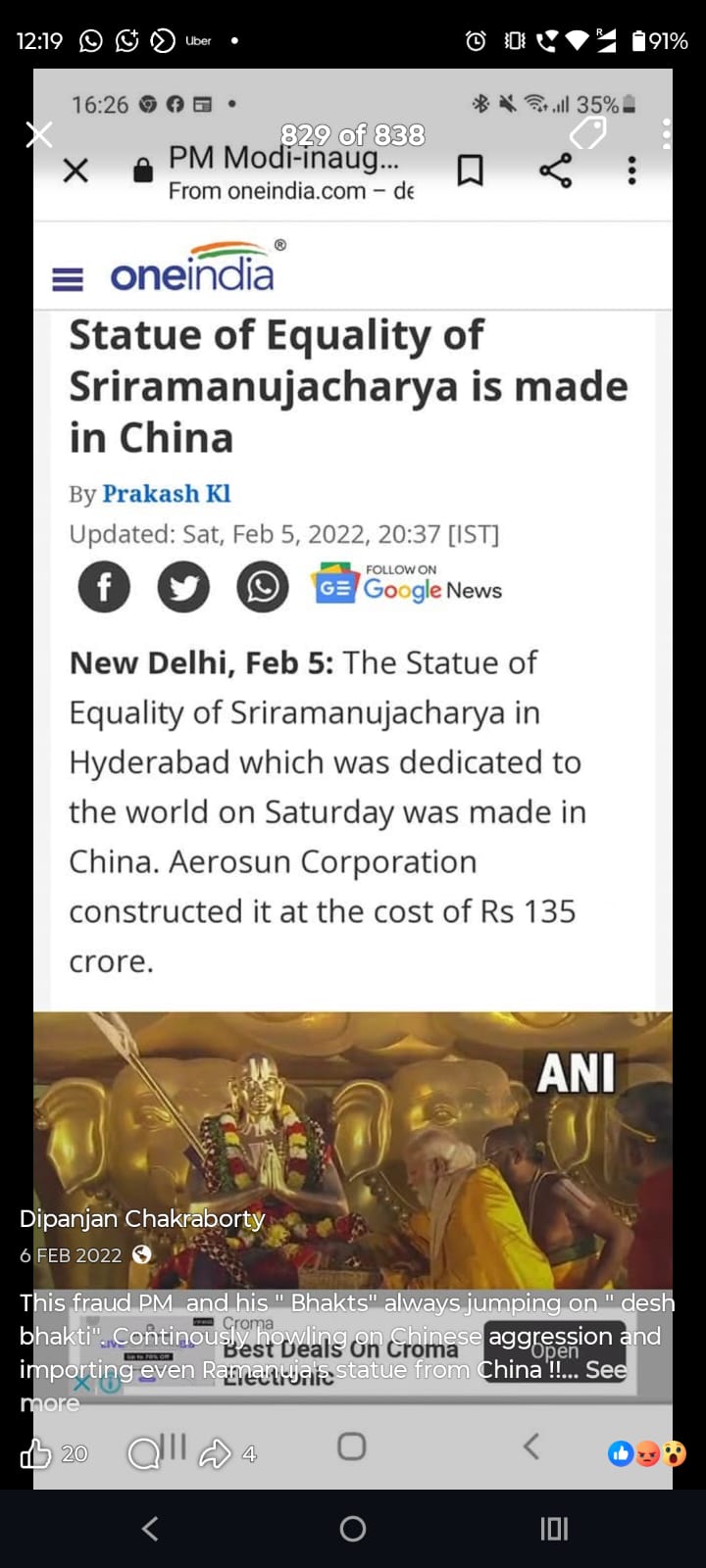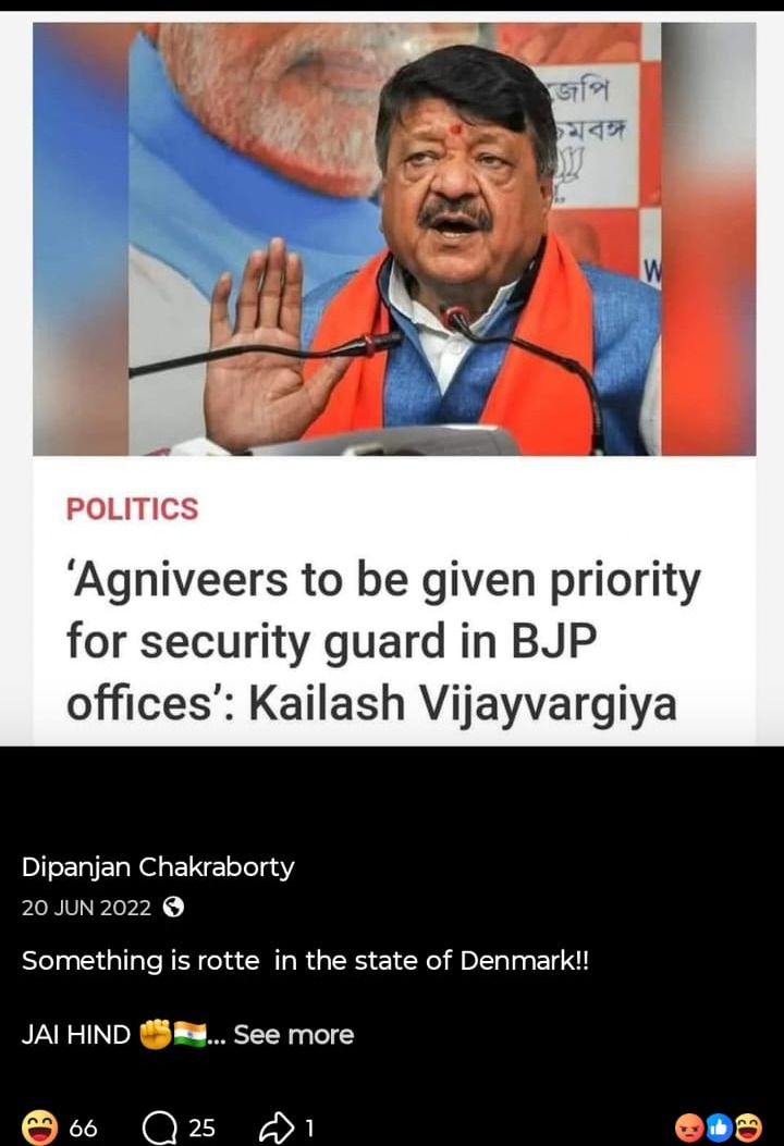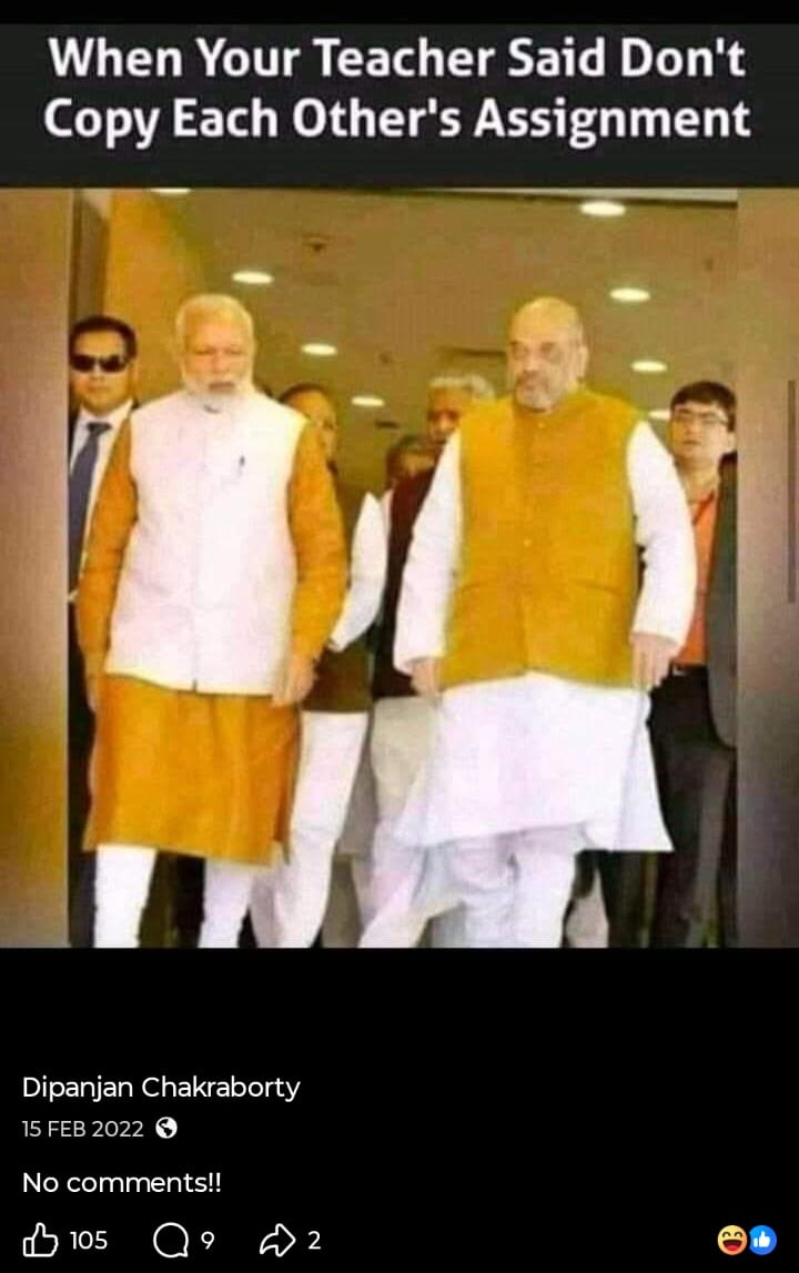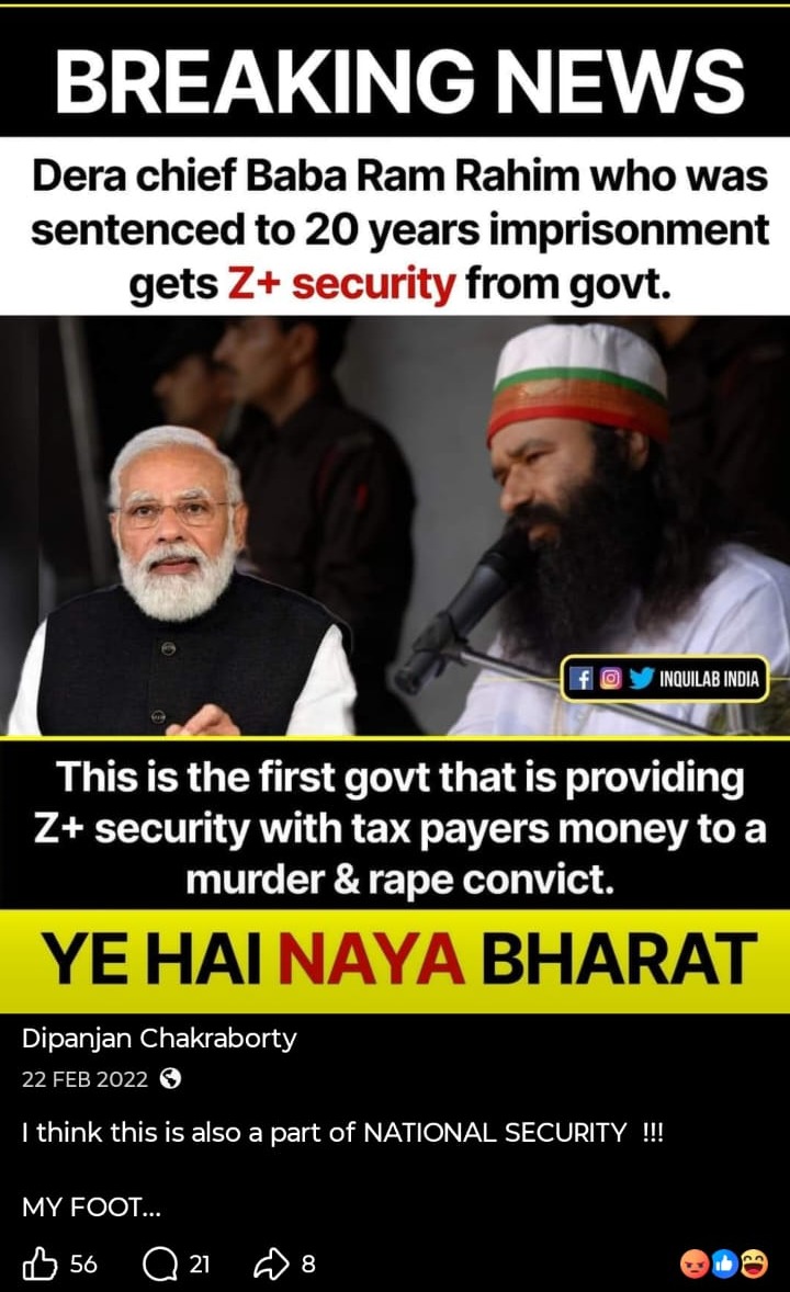 মোদি সরকারকে আক্রমণ করে সোশাল মিডিয়ায় (Social Media) একের পর এক পোস্ট, এমনকী অশালীন পোস্টও করেন প্রাক্তন এনএসজি কমান্ডো। নিজেকে চরম বামপন্থী প্রমাণে চে গেভারার ছবির সঙ্গে ছবি তুলে একই টুপি পরে প্রোফাইল ছবি করেছেন। সরাসরি মোদিকে ‘প্রতারক’ বলেও আক্রমণ করেছেন। ১৯৭৭ সালে জওহরলাল নেহরু বিশ্ববিদ্যালয়ে ইন্দিরা গান্ধির ইস্তফার দাবি উঠেছিল। বিশ্ববিদ্যালয়ে দাঁড়িয়েই সেই দাবি ইন্দিরাকে পড়ে শোনাচ্ছিলেন সীতারাম ইয়েচুরি। এই ছবি পোস্ট করে দীপাঞ্জন প্রশ্ন তুলেছিলেন, “আজকের ভারতে কি এই দৃশ্য কল্পনা করা যায়?“ আর একটি পোস্টে দেখা যাচ্ছে, একটি ছবি পোস্ট করে এক ব্যক্তি ‘জয় শ্রী রাম’ বলে চিৎকার করছেন আবার তার উলটো দিকে থাকা এক ব্যক্তি শান্ত হয়ে বলছেন ‘জয় বাবা ফেলুনাথ’। ক্যাপশনে তিনি লিখেছেন, “এর থেকে বেশি কিছু বলার নেই, অবশ্য বেশি কিছু বলার ছিলও না।“