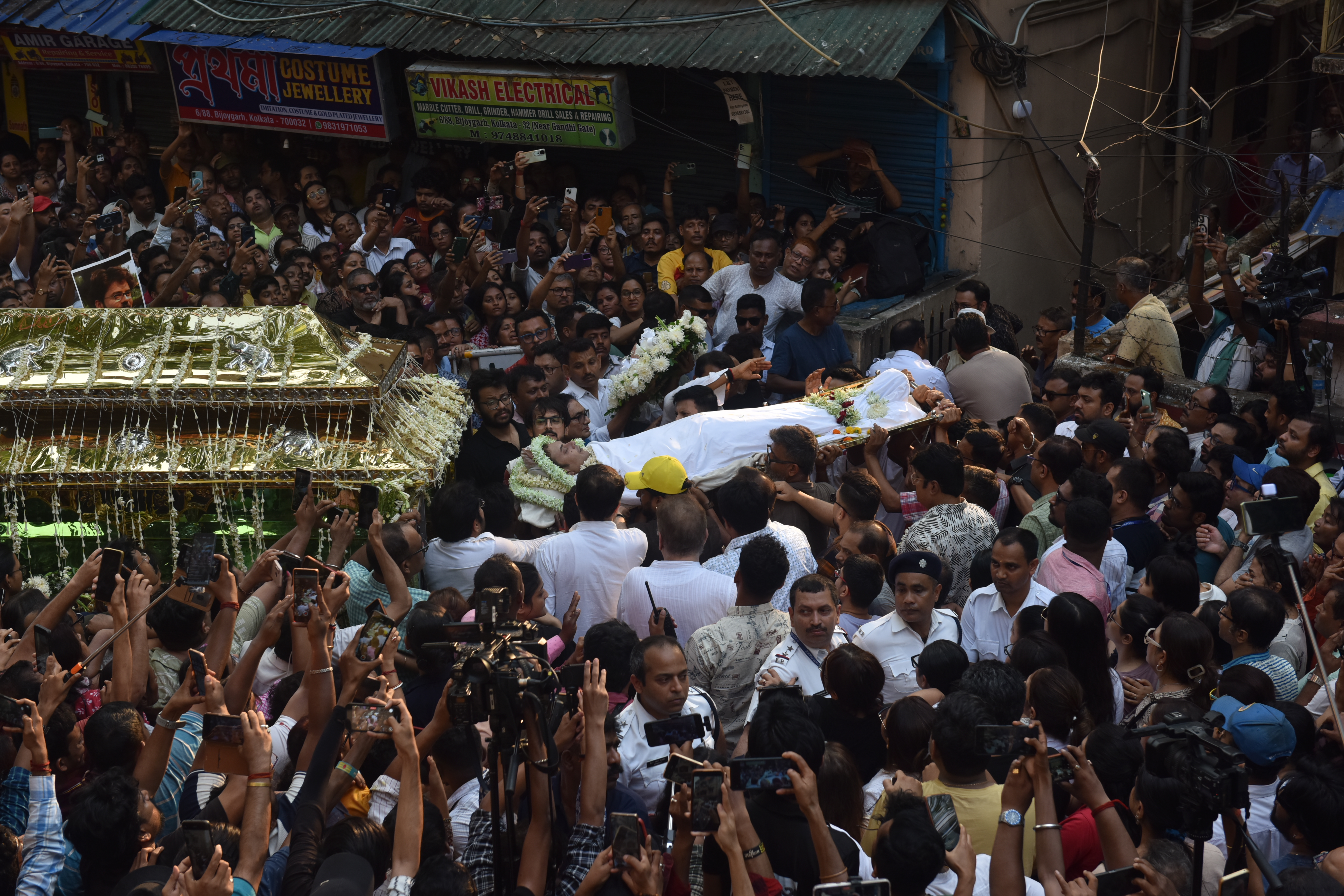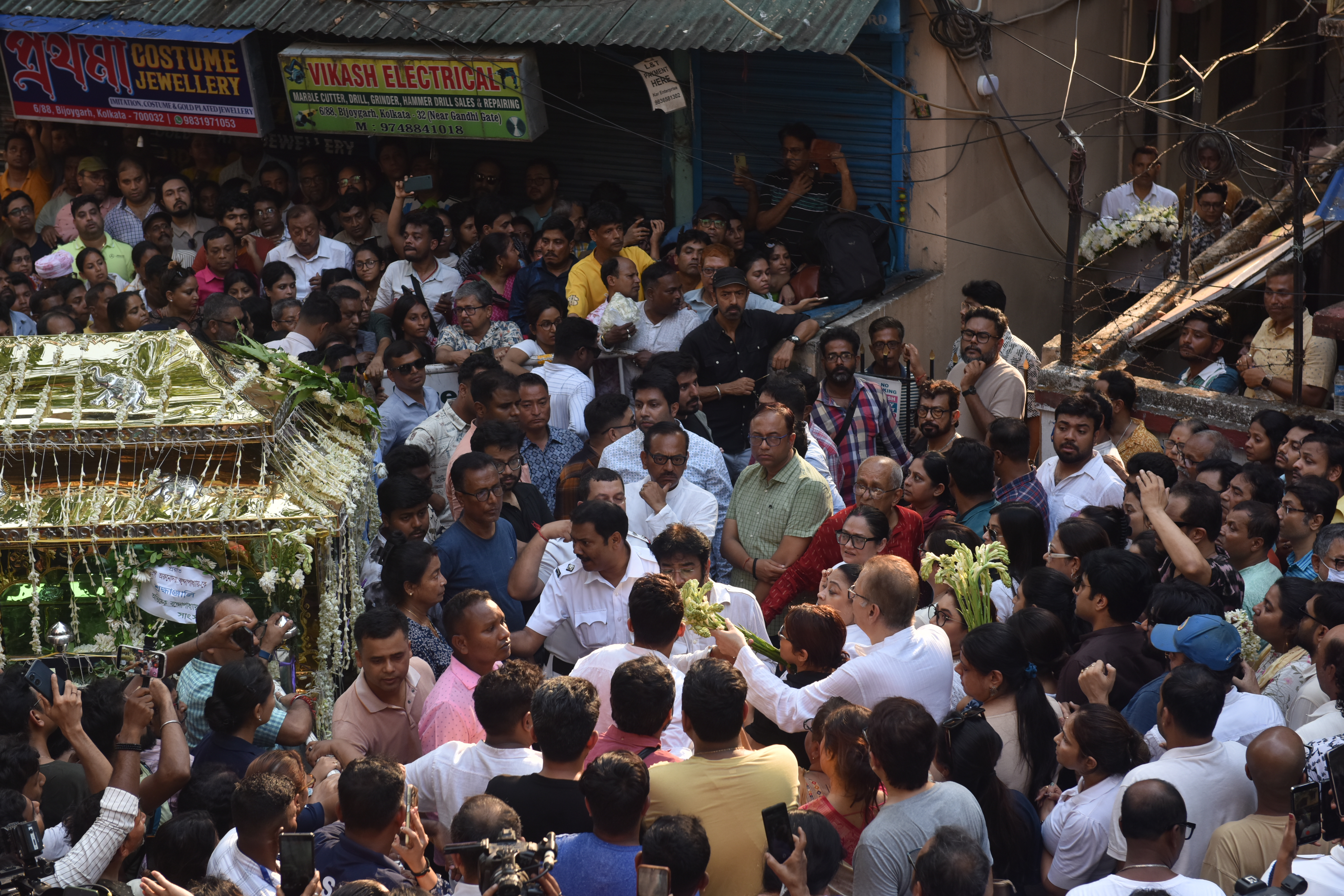 টলিউডের নক্ষত্রদের পাশাপাশি ছিলেন স্থানীয়রা। ঘরের ছেলে, পাড়ার ছেলে বাবিনকে এক ঝলক দেখেতে বাড়িক সামনে ভেঙে পড়েছিল বিজয়গড়। মরদেহে দেওয়া হয় রাহুলের প্রিয় আর্জেনটিনা ফুটবল দলের জার্সি।