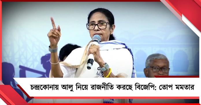 ‘SIR মানে সর্বনাশ’, বিধানসভা ভোটের প্রচারে পশ্চিম মেদিনীপুরের চন্দ্রকোনার জনসভা থেকে একযোগে বিজেপি ও কমিশনকে বিঁধলেন মমতা বন্দ্যোপাধ্যায় (Mamata Banerjee)। এখানে যেভাবে আলু নিয়ে রাজনীতি করছে ভারতীয় জনতা পার্টির সরকার, তার বিরুদ্ধে সরব মুখ্যমন্ত্রী স্পষ্ট বলেন তৃণমূল সরকার সবসময় আলু চাষীদের পাশে ছিল, আছে এবং আগামীতেও থাকবে। ক্ষতিপূরণ থেকে শস্যবিমার প্রসঙ্গ তুলে ধরে মমতায় দিন বলেন, “উন্নয়ন নিয়ে আমায় কেউ জ্ঞান দেবেন না। আলু চাষীদের সমস্যা নিয়ে রাজনীতি আমি বরদাস্ত করবো না। যদি কোনও আলু চাষির আলু নষ্ট হয় সরকার আপনাকে ক্ষতিপূরণ দেবে, নিশ্চিন্তে থাকুন।”