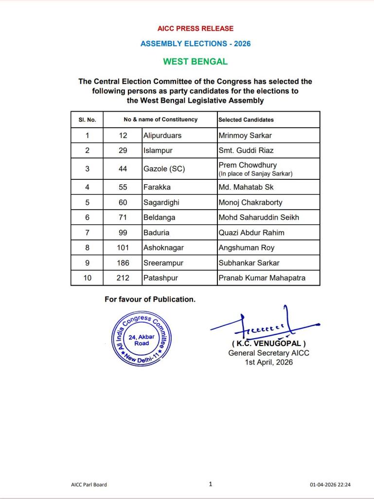 আরও পড়ুন : সোমেন-পুত্রকে প্রার্থী করা নিয়ে ধুন্ধুমার বিধান ভবনে: ফাটল কংগ্রেস কর্মীর মাথা
