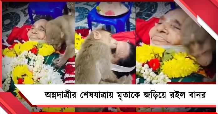 পর্বতাম্মা বাড়ির আশপাশে ঘোরাফেরা করা বানরদের নিয়মিত খাওয়াতেন। একটা অদ্ভুত সম্পর্ক গড়ে উঠেছিল অবলা প্রাণীদের সঙ্গে। হয়তো অজান্তেই গভীর হয় মানুষ ও বানরের বন্ধুত্ব। অন্নদাত্রী আজ আর নেই। এ যেন প্রিয়জনকে হারানোর শোক, তাই শেষ মুহূর্ত পর্যন্ত তাঁকে আগলে রাখার চেষ্টা বানরের। সোমবার যখন বৃদ্ধার মরদেহ তার বাড়িতে রাখা ছিল। আচমকাই দেখা যায় জনতার ভিড় ঠেলে এগিয়ে আসছে বানরটি। নিঃশব্দে গিয়ে বসে পড়ে পর্বতাম্মার পাশে। কখনও চোখ বন্ধ করে রাখে, কখনও আবার বৃদ্ধার গালের সঙ্গে গাল ঠেকিয়ে দেয়। এ দৃশ্য সোশ্যাল মিডিয়ায় ধরা পড়তেই সমাজমাধ্যম ব্যবহারকারীরা (Social Media Users) বলছেন, মানুষ ভালবাসার মর্ম বুঝতে পারেনা কিন্তু এই বানর যেন অজান্তেই অনেক কিছু বুঝিয়ে দিয়ে গেল। আসলে অনুভূতিরা সবসময় বাঙময় নয়। বৃদ্ধার মৃতদেহের পাশে বানরের চুপচাপ বসে থাকা, নীরব চাহনি বারবার বুঝিয়ে দিচ্ছিল তার হৃদয়ভাঙ্গা কষ্টের কথা। এটাই শেষ দেখা। অস্থির সময়ে যখন চারপাশে শুধুই আগ্রাসী মানসিকতা আর মানুষের মানুষের স্বার্থপরতার চেনা ছবি, তখন এ দৃশ্য যেন সত্যিই বিরল। ভুলতে পারছেন না প্রত্যক্ষদর্শীরাও।