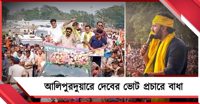আলিপুরদুয়ার বিধানসভার (Alipurduar Assembly) তৃণমূল কংগ্রেস প্রার্থী সুমন কাঞ্জিলালের (Suman Kanjilal) সমর্থনে ঢালাও রোড শো করার কথা ছিল দেবের (Dev)। সোমবার প্যারেড গ্রাউন্ডে নেমে সেখান থেকেই রোড শো শুরু করেন যা চৌপথি পর্যন্ত হওয়ার কথা ছিল। অভিনেতাকে দেখতে কেউ রাস্তার পাশে, কেউ ছাদে, তো কেউ আবার গাছের ডালে উঠে পড়েছিলেন। কিন্তু বিএফ রোডে রোড শো চলাকালীন আচমকা প্রচারে ইতি টানতে বাধ্য হন দেব (Dev)। তৃণমূল প্রার্থী সুমনের অভিযোগ, কমিশন পর্যাপ্ত নিরাপত্তা ব্যবস্থা না দেওয়ার কারণেই কর্মসূচি সম্পূর্ণ করা যায়নি। এটা চক্রান্ত হতে পারে বলি তিনি দাবি করেছেন। তোপ দাগেন তৃণমূল নেতা মৃদুল গোস্বামীও। অভিনেতাকে দেখতে না পাওয়ায় সাধারণ মানুষের মধ্যে অসন্তোষ তৈরি হয়। আলিপুরদুয়ারের জোড়া ফুল প্রার্থী সুমন বলেন আগামী ৪ মে জয়ের পর দেবকে (Dev) নিয়ে ফের রোড শো করানো হবে।