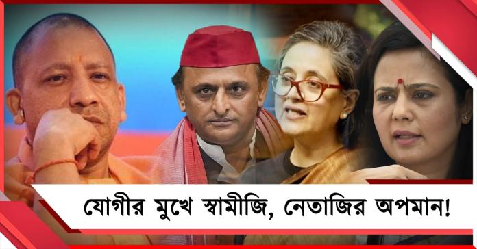 বাংলার মনীষীদের অপমান করাই যেন বিজেপির বহিরাগত নেতাদের প্রথা, আর এই প্রথা দিয়েই বাংলা-প্রেম দেখাতে মরিয়া বিজেপি! বারবার বিজেপি রাজ্যের মুখ্যমন্ত্রীরা বাংলায় এসে যেভাবে বাংলার মনীষীদের অপমান করছেন তাতে তাঁদের সংযত করার কোনও পথেই যে হাঁটেনি বিজেপির শীর্ষ নেতৃত্ব, ফের একবার প্রমাণ করলেন উত্তরপ্রদেশের মুখ্যমন্ত্রী যোগী আদিত্যনাথ (Yogi Adityanath)। এবার স্বামী বিবেকানন্দ (Swami Vivekananda) ও নেতাজি সুভাষচন্দ্র বোসকে (Netaji Subhash Chandra Bose) একসঙ্গে অপমান করলেন যোগী আদিত্যনাথ। সেই ভিডিও তুলে ধরে কটাক্ষ বাংলার শাসকদল তৃণমূল কংগ্রেস। যোগীর মুখোশ খুলতে ছাড়লেন না সমাজবাদী পার্টির প্রেসিডেন্ট অখিলেশ যাদব (Akhilesh Yadav)।