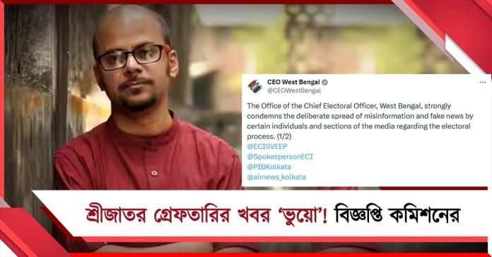 ভোটবঙ্গে অবাধ ও শান্তিপূর্ণ নির্বাচন করার দাবি করে একাধিক পদক্ষেপ করতে দেখা গেছে কমিশনকে। প্রথম দফা নির্বাচনের ঠিক একদিন আগে বুধবার সকালে হঠাৎ করে ছড়িয়ে পড়ে কবি শ্রীজাতকের পুরনো একটি কবিতা মামলায় গ্রেফতারির নির্দেশ দিয়েছে আদালত। এমনকি ওয়ারেন্ট ইস্যু করা হয়েছে বলেও জানা যায়। তোলপাড় শুরু হয় সব বলে। শ্রীজাত নিজে প্রতিক্রিয়া দিতে গিয়ে বলেন, গলা খুলে মাথা তুলে কথা বলার মতো ‘অন্যায়’ করার জন্য হয়তো তাঁকে মাশুল দিতে হবে। প্লেটোর উদ্ধৃতি টেনে কটাক্ষও করেন কবি। প্রশ্ন ওঠে ২০১৯ সালে যে মামলা হয়েছিল তার ভিত্তিতে ভোটের ঠিক আগের দিন গ্রেফতারি পরোয়ানা কেন? নিন্দায় সরব হয় ওয়াকিবহাল মহল। একজন কবি কীভাবে সুষ্ঠু নির্বাচনের পথে বাধা হতে পারে সে যুক্তি নিয়ে যখন আলোচনা সমালোচনা শুরু হয়েছে, ঠিক তখনই আনুষ্ঠানিকভাবে বিবৃতি জারি করে নির্বাচন কমিশন জানায় খবরটি ভুয়ো। অফিসিয়াল বিবৃতিতে লেখা হয়েছে, ‘উদ্দেশ্যপ্রণোদিতভাবে ভুল তথ্য ও ভুয়ো খবর ছড়ানোর তীব্র নিন্দা জানানো হচ্ছে।’