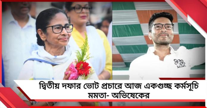 বাংলার বিধানসভা নির্বাচনের প্রথম দফায় রেকর্ড ভোটদান শেষে, এবার নজর দ্বিতীয় দফায় (second phase of West Bengal assembly election)। শুক্রবার মিছিল-জনসভায় একগুচ্ছ কর্মসূচি রয়েছে তৃণমূল কংগ্রেসের শীর্ষ নেতৃত্বের। আজ মুখ্যমন্ত্রী মমতা বন্দ্যোপাধ্যায় (Mamata Banerjee) প্রচার সভা করবেন হাওড়া ময়দানে। এর পর তিনি নিজের কেন্দ্র ভবানীপুর এবং জোড়াফুলের প্রার্থী ফিরহাদ হাকিমের (Firhad Hakim) সমর্থনে কলকাতা বন্দর এলাকায় মিছিল ও জনসভা করবেন।