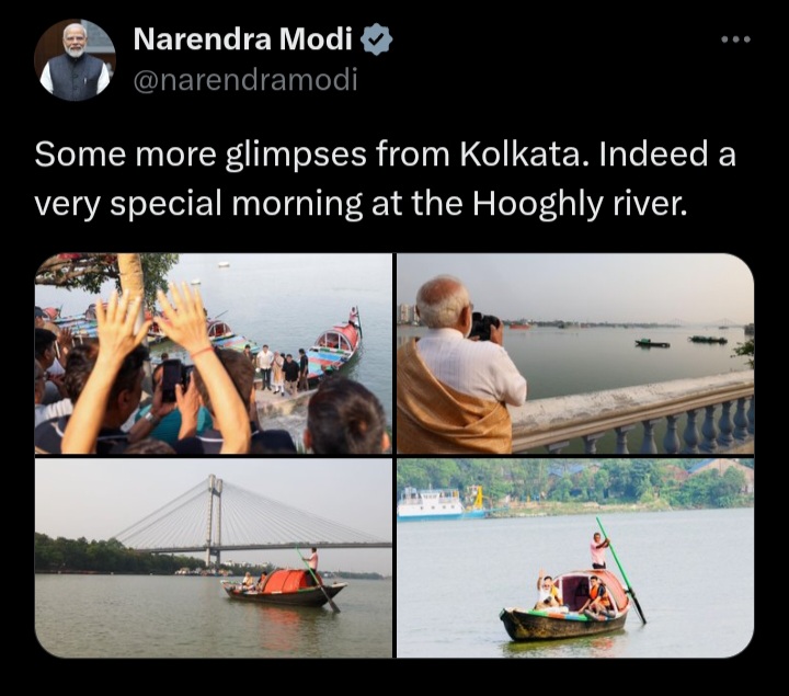 মোদির নিজেও নৌকায় বসে থাকা অবস্থায় নিজের কিছু ছবি শেয়ার করে এক্স হ্যান্ডেলে লেখেন,‘প্রত্যেক বাঙালির মনে মা গঙ্গার একটা বিশেষ জায়গা রয়েছে৷ বলতেই পারেন বঙ্গের আত্মার মধ্য দিয়ে প্রবাহিত হন মা গঙ্গা৷ এই পবিত্র জল গোটা সভ্যতার চিরন্তন ঐতিহ্য বহন করে’৷ এরপরই ভোট রাজনীতির কথা উঠে আসে তাঁর পোস্টে। বাঙালি আবেগকে কাজে লাগিয়ে গঙ্গার বুক থেকেই প্রধানমন্ত্রী পশ্চিমবঙ্গের মানুষের উন্নয়ন এবং বাঙালিদের সমৃদ্ধির অঙ্গীকার করেন।
