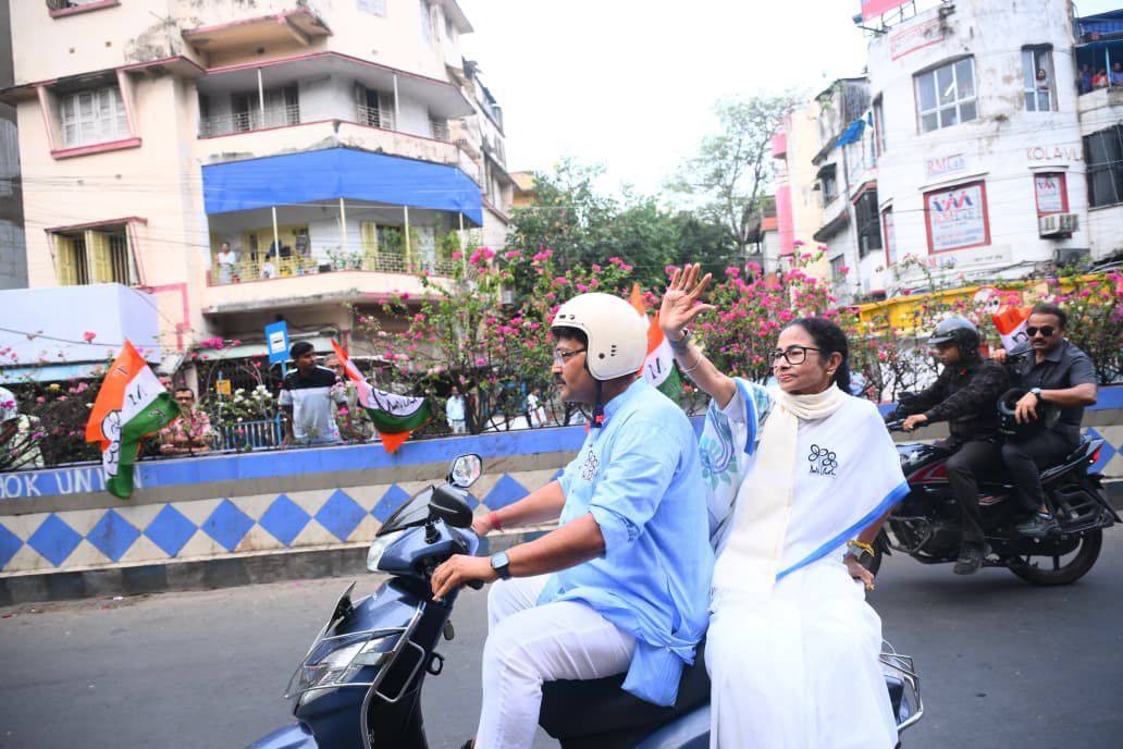 ভোটের শেষদিনের প্রচারে শেষ মুহূর্তের ঝড় তুললেন তৃণমূল সুপ্রিমো মমতা বন্দ্যোপাধ্যায় (Mamata Banerjee)। বুধবার দ্বিতীয় দফার ভোটের আগে সোমবার (Monday) বিকেলে যাদবপুরের (Jadavpur) সুকান্ত সেতু থেকে শুরু হয় তাঁর বিশাল পদযাত্রা। পাঁচটি বিধানসভা কেন্দ্র ছুঁয়ে এই রোড শো ঘিরে সাধারণ মানুষের উৎসাহ ছিল চোখে পড়ার মতো। রাস্তার দুই ধারে, বাড়ির বারান্দা, ছাদ, জানলা সব জায়গায় ছিল মানুষের ভিড়। রাস্তায় জনসংযোগের মধ্যেই মোটরবাইকেও চড়তে দেখা যায় তাঁকে, যা ঘিরে সমর্থকদের মধ্যে বাড়তি উচ্ছ্বাস তৈরি হয়।