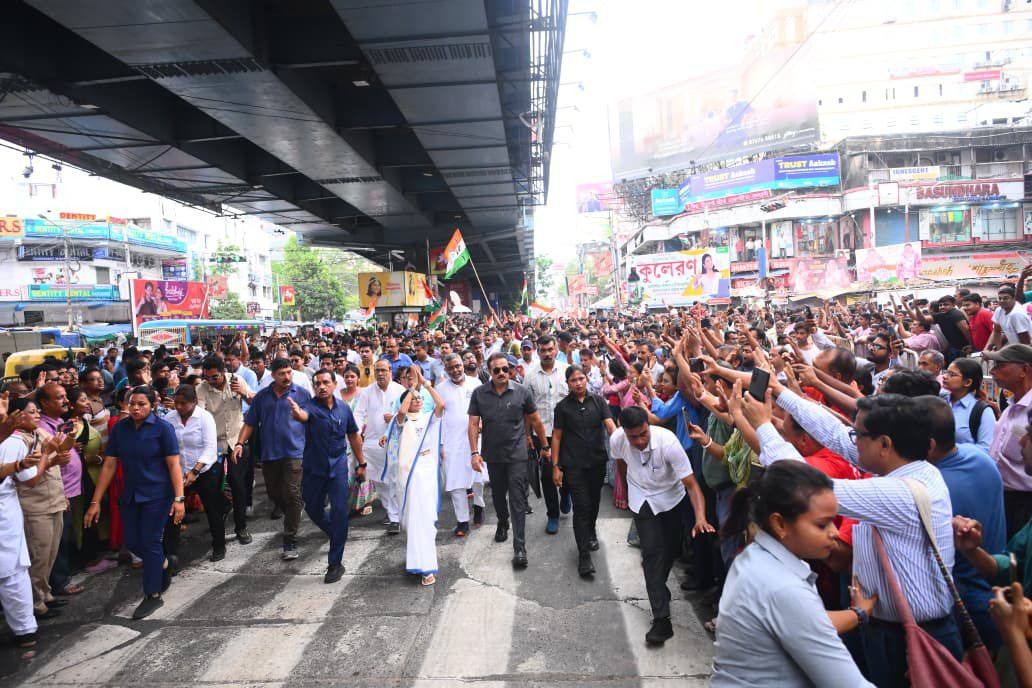 এই মিছিলে একাধিক আবেগঘন মুহূর্তও ধরা পড়ে। এক বৃদ্ধার হাত ছুঁয়ে আশীর্বাদ নেন মমতা বন্দ্যোপাধ্যায়, ছোটদের সঙ্গে কথা বলেন, সাধারণ মানুষের সঙ্গে হাত মেলান। ‘জয় বাংলা’ স্লোগানে ভরে ওঠে গোটা এলাকা। পাঁচটি বিধানসভা কেন্দ্র ছুঁয়ে এই মহামিছিল শেষ পর্যন্ত কার্যত জনসমুদ্রে পরিণত হয়।